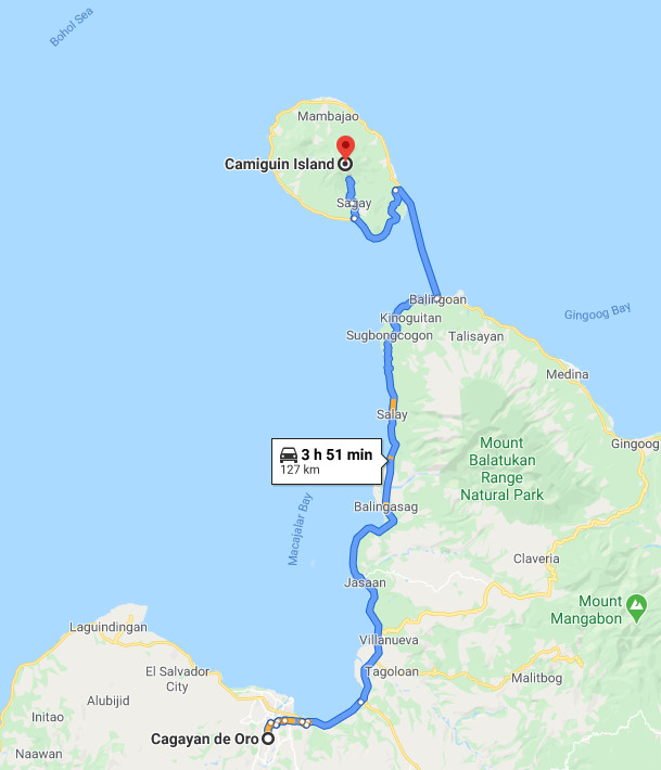 Camiguin Island from Cagayan De Oro city is about 3 hours 51 minutes transportation van and ferry.